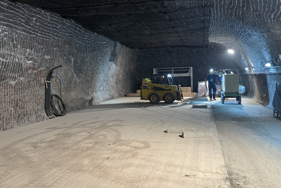 Für dieses Projekt wurde der Hohlraum erweitert, Felsstrukturen bearbeitet und moderne Medientechnik tief im Berg installiert – ein bauliches und logistisch außergewöhnliches Vorhaben. Es entstanden zwei Räume, die zahlreiche Sitzplätze bieten. Die natürliche Struktur des Berges dient als eindrucksvolle Kulisse. Eine dezente Beleuchtung hebt die Steinsalzschichten hervor, während eine Deckenprojektion den Blick in einen scheinbar endlos fortlaufenden Stollen öffnet.